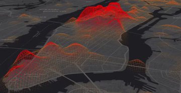 Une visualisation 3D des appels en téléphonie mobile à New York (données agrégées sur une semaine) :