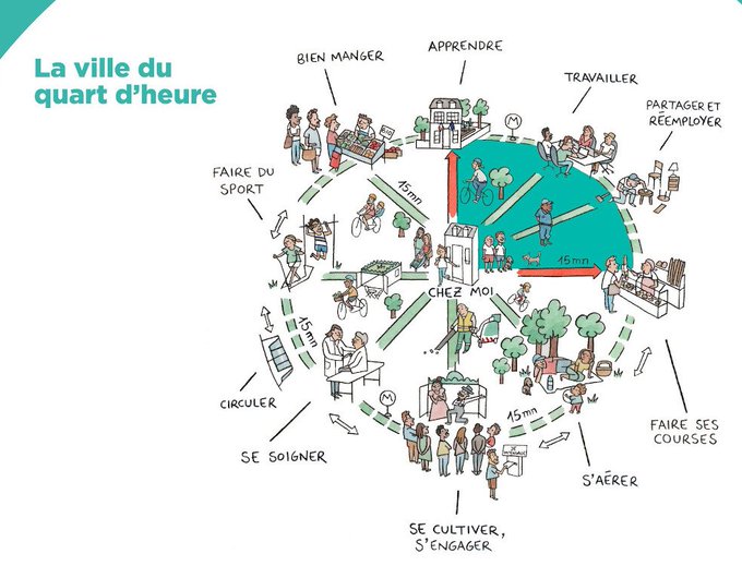 Avec @lacydone, on a travaillé sur la « ville du quart d'heure » et on publie tout demain. En guise d'amuse-bouche : une carte. pic.twitter.com/Dms4Nvss9m