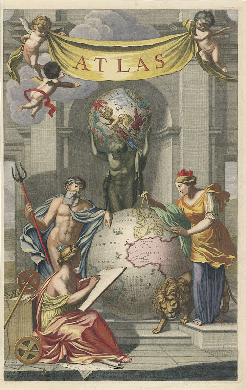On y trouve des cartes de toutes sortes, des globes et des mappemondes bien sûr, mais aussi des plans de villes, des plans de bataille, des illustrations et autres allégories cartographiques...