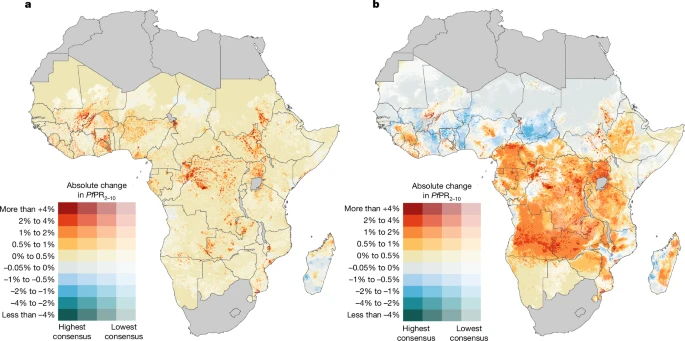 Des chercheurs analysent les effets du changement climatique sur le paludisme en Afrique en croisant climat, dynamiques sanitaires, contextes socio-économiques et événements extrêmes. Ils montrent comment ces facteurs combinés modifient les risques du paludisme. L’analyse repose sur 25 ans de données climatiques, sanitaires et socio-économiques, modélisées à 5×5 km jusqu’en 2050. Le scénario SSP2-4.5, intermédiaire, sert de base pour mesurer l’impact futur du climat sur les territoires déjà touchés par le paludisme. Le résultat majeur est quantifié. Entre 2024 et 2050, le changement climatique pourrait provoquer 123 millions de cas supplémentaires de paludisme et 532.000 décès en Afrique, à politiques de santé constantes, malgré les progrès réalisés depuis les années 2000. Contrairement aux idées reçues, l’extension géographique du paludisme reste marginale. Plus de 99% des nouveaux cas apparaissent dans des régions déjà endémiques. Le risque augmente surtout par intensification locale plutôt que par conquête de nouveaux espaces. Les événements climatiques extrêmes deviennent le facteur dominant. Inondations et cyclones expliquent 79% des cas supplémentaires et 93% des décès. Ils détruisent habitats, infrastructures de santé et dispositifs de prévention, perturbant durablement les systèmes locaux. Les zones les plus touchées combinent forte densité humaine et vulnérabilité climatique. Sud du Nigeria, région des Grands Lacs, Angola ou Zambie cumulent chaleur, inondations et fragilité des services de santé, renforçant les inégalités spatiales face au risque sanitaire. Les mécanismes écologiques seuls jouent un rôle secondaire. Le réchauffement favorise parfois les moustiques en altitude, mais peut aussi dépasser leurs seuils de tolérance ailleurs. Les effets sociaux et territoriaux du climat pèsent davantage que la biologie. Le paludisme apparaît comme un révélateur des liens entre climat, santé et territoires. Sans systèmes de soins résilients et adaptés aux chocs climatiques, le changement climatique compromet les trajectoires de réduction de la maladie en Afrique.