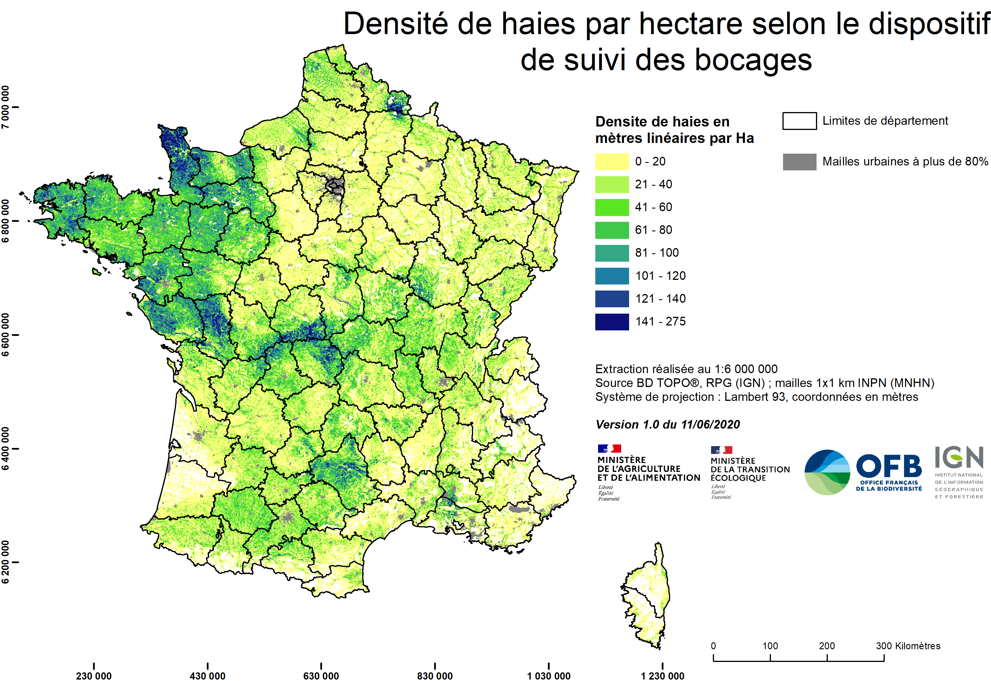 Le référentiel linéaire des haies a été monté en base et intégré dans la BDTOPO. Les données haies sont disponibles :