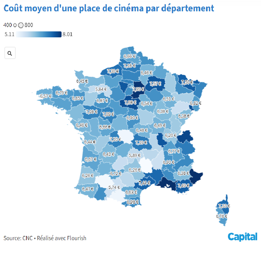 « Carte. Combien coûte une place de cinéma selon votre département ? »