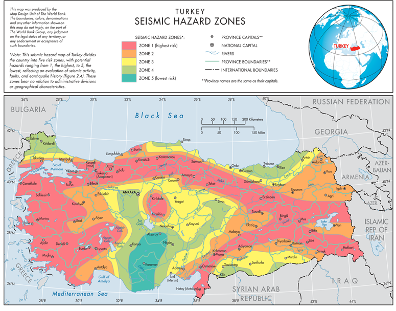 Rashmin G, Escudero I., Anil O, Edward D-J. & al., Global Rapid Post-Disaster Damage Estimation (GRADE Report), 2023, februar 6, Kahramanmaraş Earthquakes, Türkiye Report, Washington, DC (Banque mondiale). Ce rapport de la Banque mondiale estime à plus de 34 milliards de dollars les dommages causés par les séismes en Turquie, soit l'équivalent de 4 % du PIB du pays en 2021. Ce montant pourrait être deux fois supérieur du fait des coûts liés à la reconstruction. Les baisses de PIB dues aux perturbations économiques engendrées par les tremblements de terre en Turquie (plus de 10 000 répliques en un mois) viennnent s’ajouter aux dommages directs.