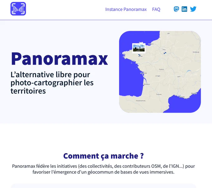 A terme, Panoramax pourrait devenir une sorte de StreetView à la française, mais il est encore trop tôt pour savoir quel sera l'avenir du projet. Il existe déjà une application semblable Mapillary qui semble rencontrer un succès important à l'échelle mondiale, même si la finalité est un peu différente. Sur Panoramax, les photos sont fournies par la communauté, hébergées sur plusieurs instances, disponibles en licence CC-BY-SA 4.0 et téléchargeables en pleine résolution. Il est d'ores et déjà possible d'y déposer des images et de l'utiliser en lien avec différentes applications cartographiques (notamment QGIS).