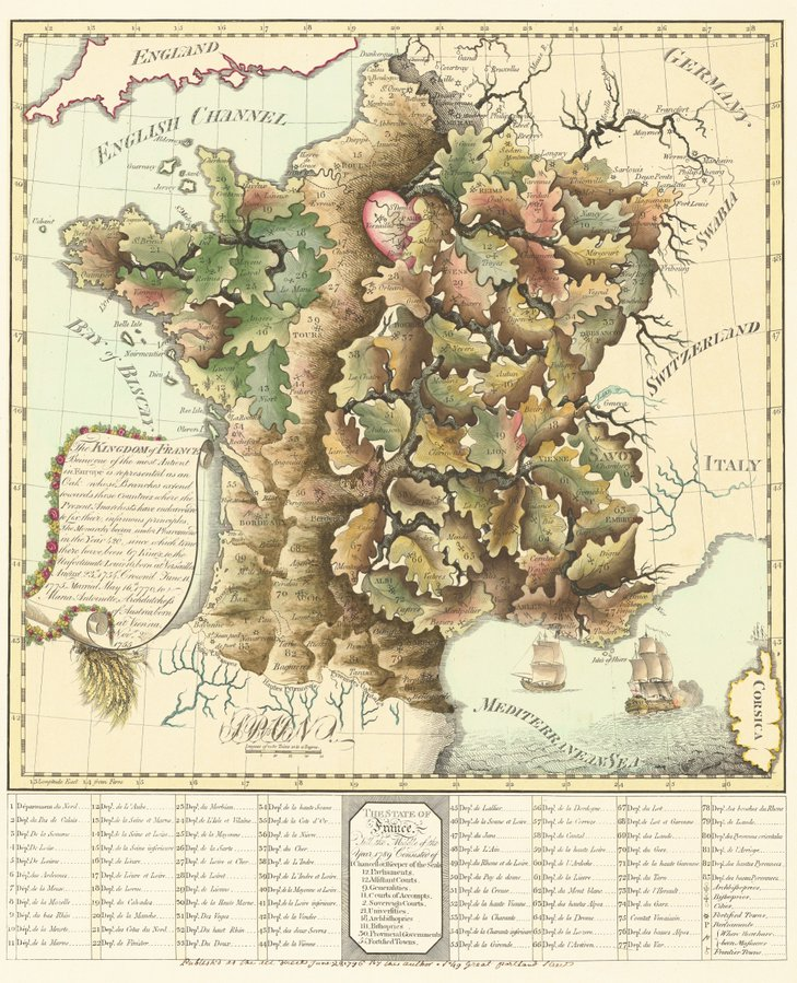 Le Royaume de France représenté comme un chêne (source : © Barron Maps)
