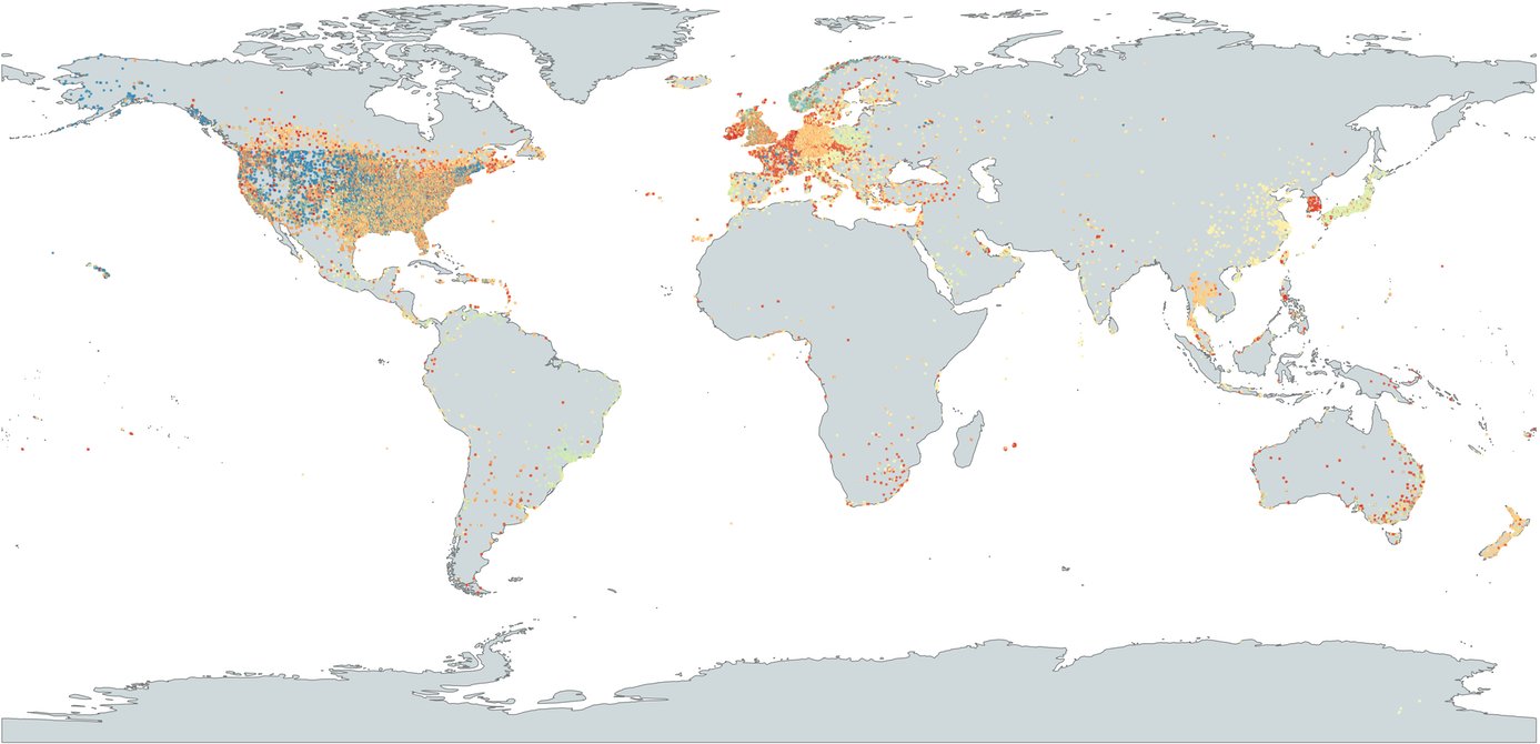 Le Monde fournit une carte interactive par aplats. Libération donne aussi une carte des résulats par communes mais avec des cercles proportionnels au nombre de suffrages, ce qui permet de relativiser quelque peu. Les métropoles et leur couronne semblent constituer un rempart face au RN. En cliquant sur ces cartes interactives, on peut afficher le détail des votes, de manière à aller au delà du premier parti en tête.